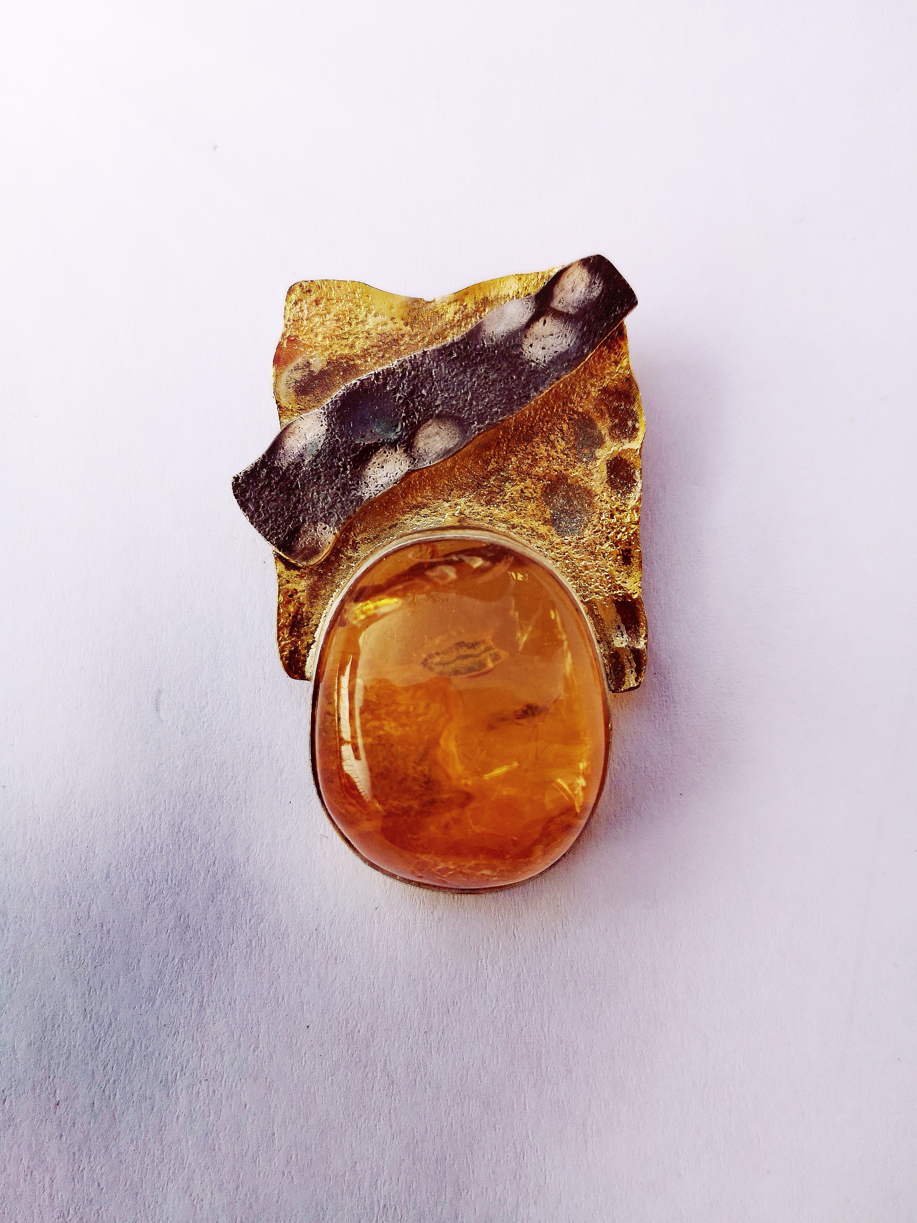 Anhänger Eva Stone, Bernsteininkluse in Sterlingsilber, teilvergoldet