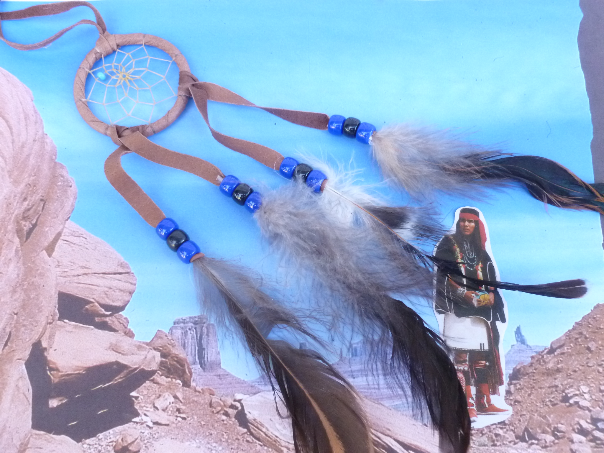 Durch den Federschmuck am Traumfänger sollen gute Träume und Gedanken auf den Träumenden geleitet werden, denn Federn sind Symbole der Reinheit und Wahrheitsliebe.