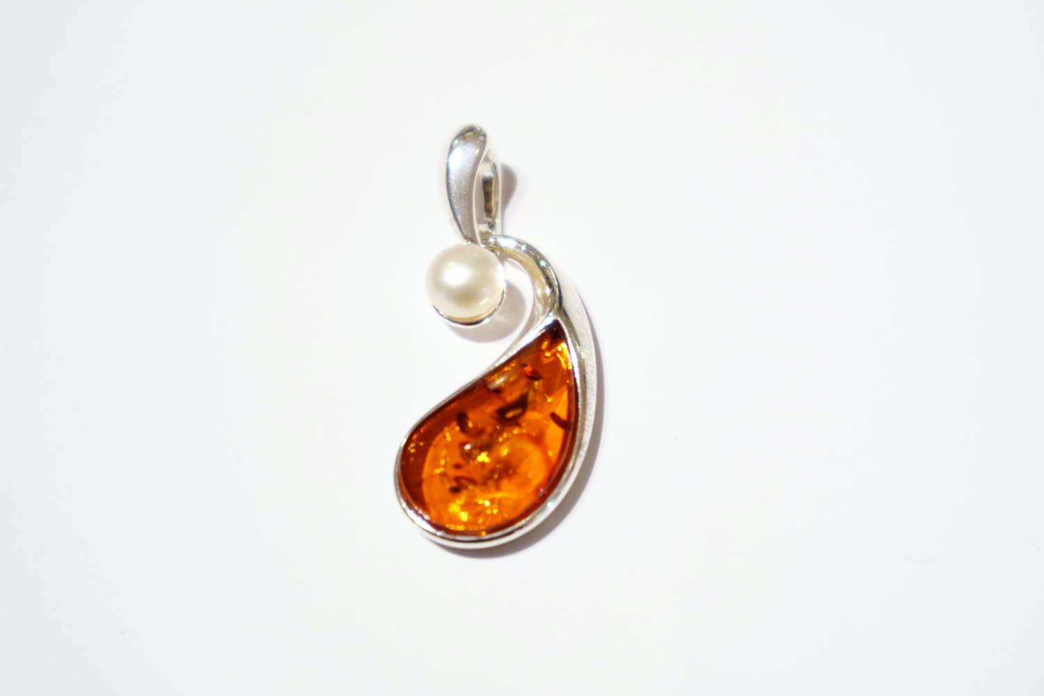 AparterAnhänger mit Bernstein und Perle ist sehr gut mit Ihrem Perlenschmuck kombinierbar