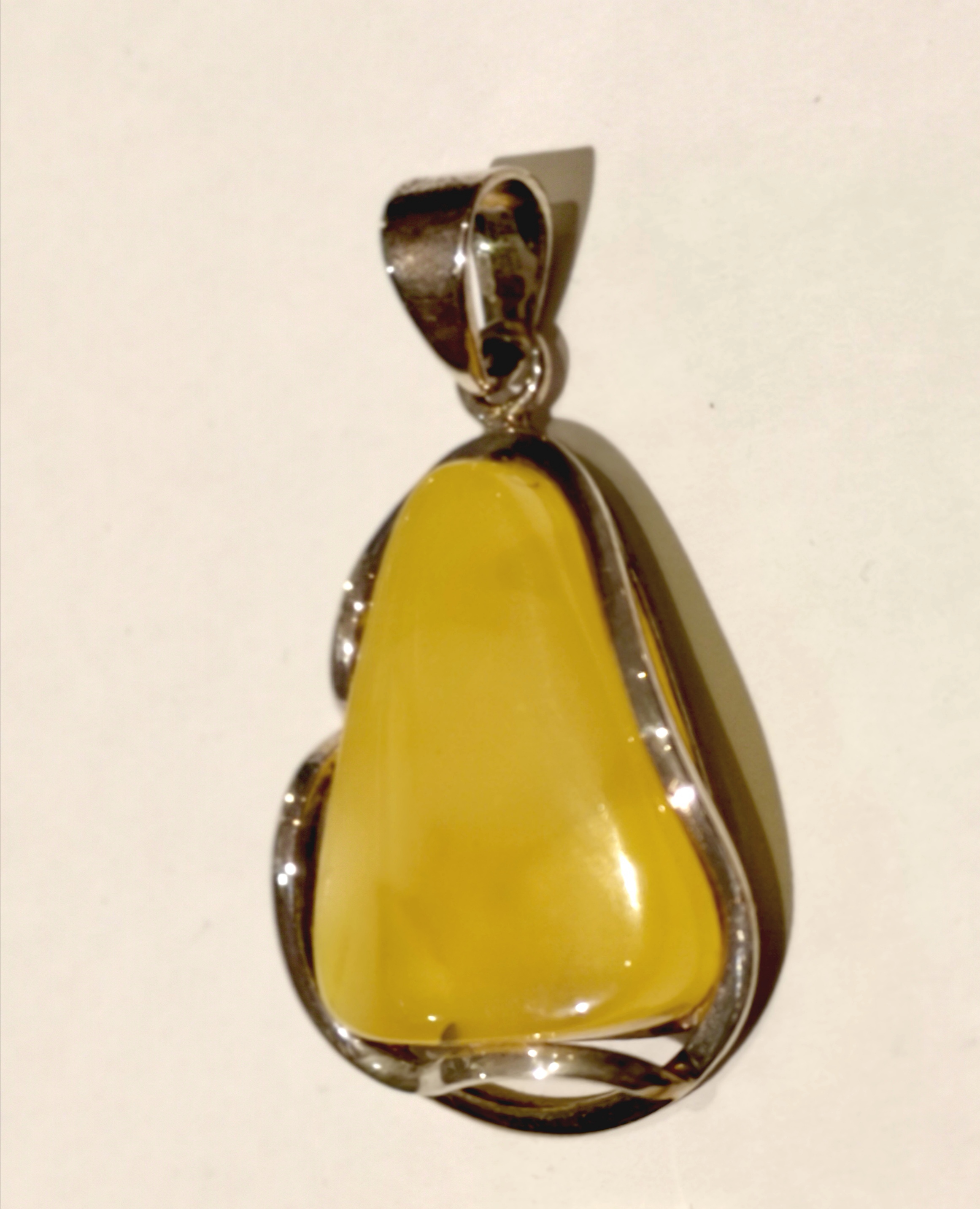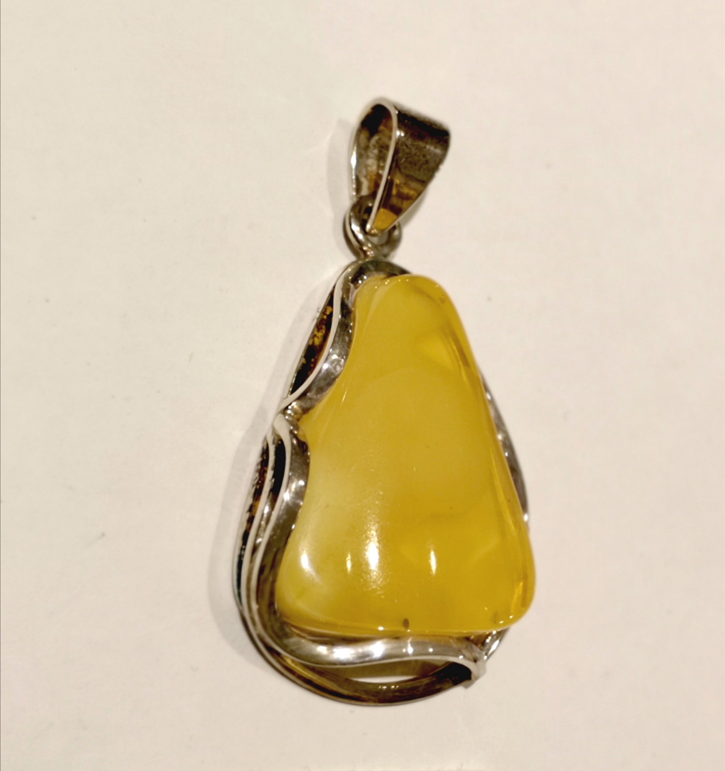 Gelber Bernstein mit schönen "Wölkchen" im modernen 925 Sterling-Silberrahmen