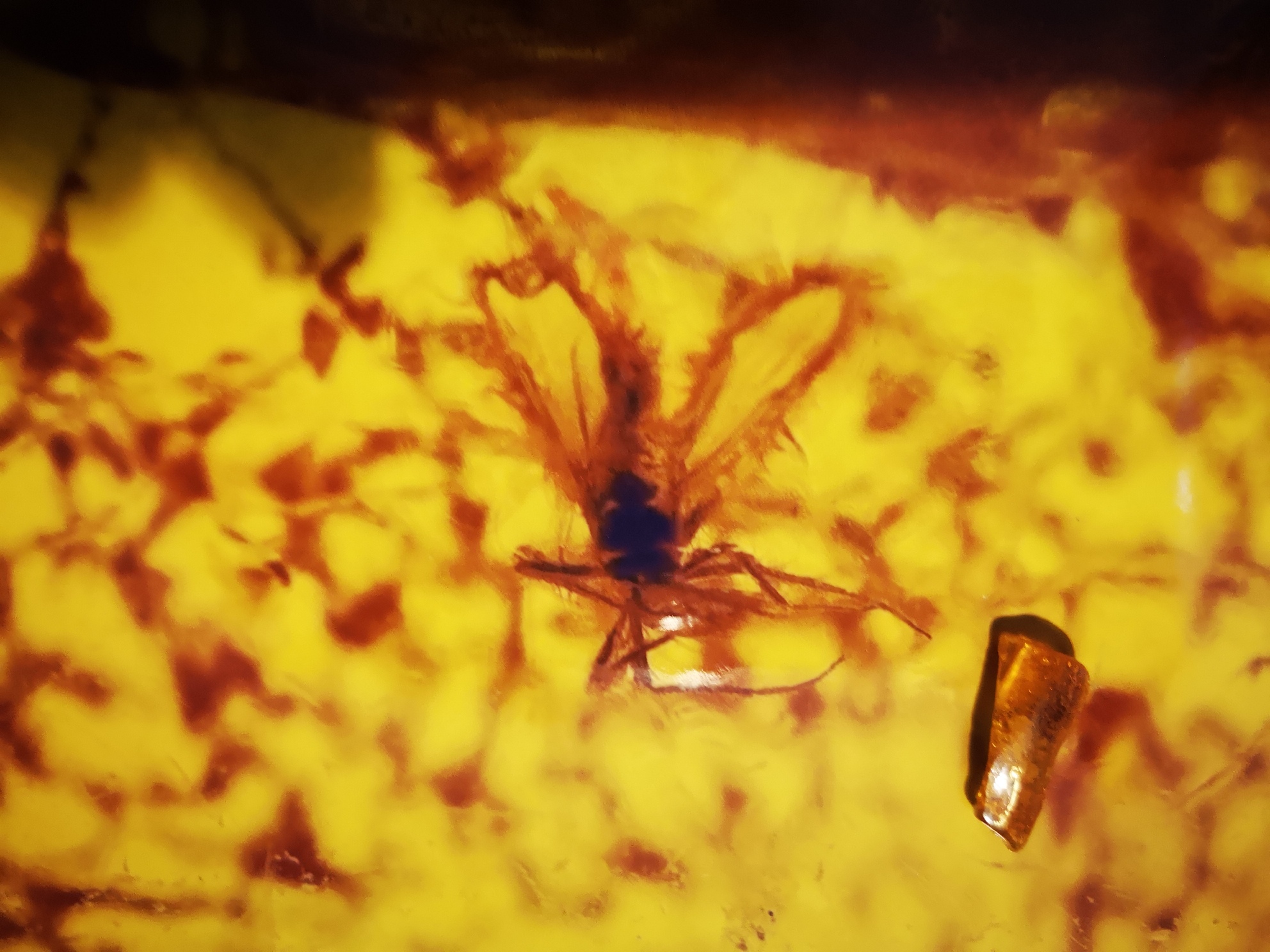 Bernstein im Vergrößerungsbox mit Bild und Expertise
